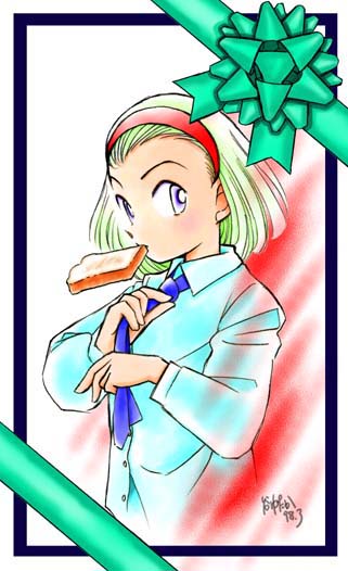 「それゆけそのこ」のページに、とりあえず置いておいたイラスト。1998年3月下旬〜4月上旬ぐらいまで掲載。 鈴木園子ファンとして、気合が入りすぎた結果。逆に。なんだか今いち、面白みのない絵になってしまった。(そのわりに、けっこう難しくて。悩んだりもしたような…) 虎視眈々と、再挑戦を期するこの頃。 (谷 豊/1998.3)