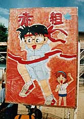 兵庫県豊岡市立某小学校では、運動会に応援の看板を作るのが恒例になっているそうなのですが。この9月に行なわれました今年度の運動会、赤組の応援看板には、コナンくんが登場とのこと。