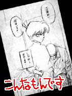 場面は… 4月8日発売の少年サンデー「コナン」最終ページ、「工藤新一… 探偵ですよ…」(!)の部分。いうまでもなく、青山先生直筆。