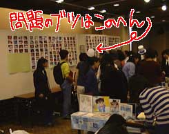 さっそく、会場の中心に飾っていただきまして。「今、アシスタントの谷さんが、青山先生直筆の原画を持って…」のアナウンス。いや。まあ。それほど、大げさなものでも…