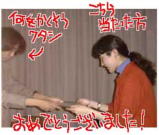 主催の方が「こちらでクジを引くのは、あまりに怖くて…」とのことでしたので(怖いって、いったい…)。問題の賞品の抽選は、私が行うことになりましたですー。