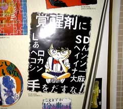 このポスターは。「薬物乱用防止」というテーマで小中学生が描いた何点かのイラストを、コラージュしてあるものなのですけど。中で、深川第7中学校の宮沢さんという方がコナンくんを描いてくれています。宮沢さん、ありがとう!