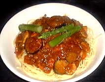 スパゲッティを茹でて、ソースをかけて、